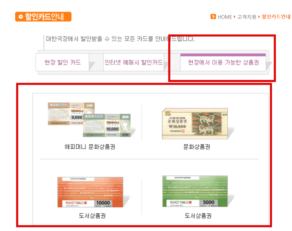 대한극장에서도 해피머니 문화상품권과 문화상품권 도서상품권등을 이용해서 예매를 할 수 있으니 참고가 되시기를 바랍니다.
