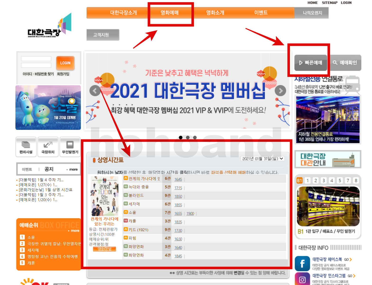 대한극장 상영시간표 확인 홈페이지 바로가기는 위에 올려두었습니다.