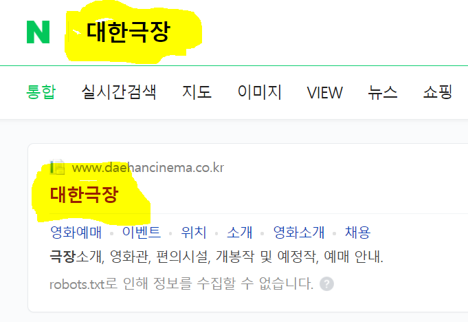 포털사이트에서 대한극장을 검색하면 대한극장 홈페이지에 바로 들어 갈 수 있습니다.