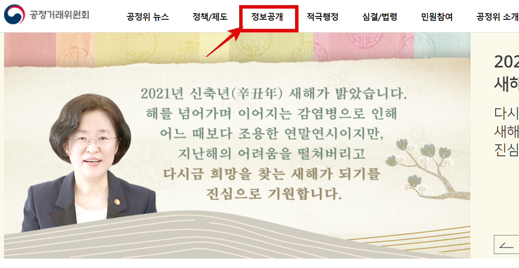 공정거래위원회 메인 홈페이지에 접속한 뒤에 상단부분에 있는 정보공개 카테고리를 선택 해 줍니다.