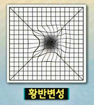저는 갑자기 앞을 보는데 물체들이 모두 꼬불꼬불 휘어보여서 어지럽기 까지 하는 증상이 나타나서 진찰을 받으니 황반변성 이라고 나왔습니다.