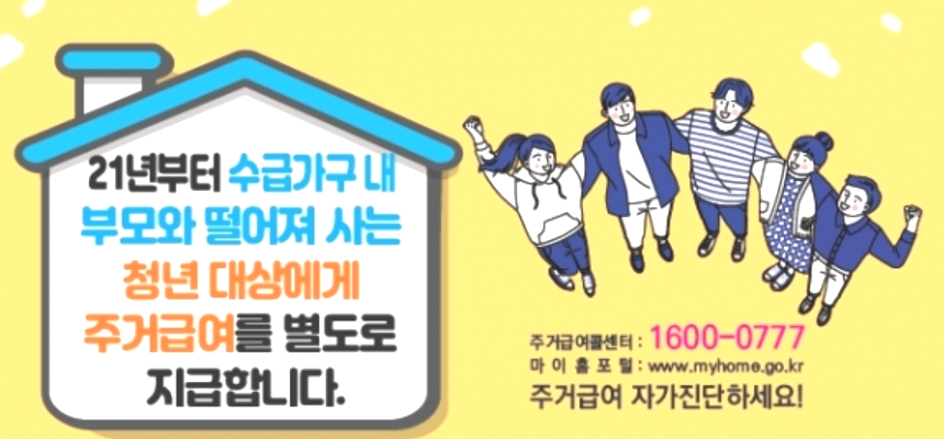 2021년 부터 기존 주거급여 수급가구에 한해 부모와 떨어져 살고 있는 20대 미혼 자녀 청년들에게 직접 주거급여를 분리 지급하는 제도 입니다.