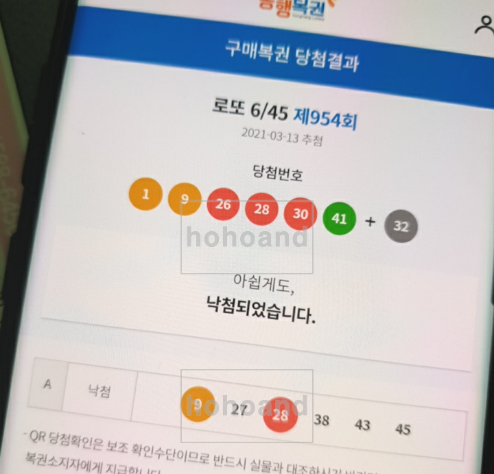 언제나 QR코드를 활용하여 당첨결과를 확인하는데 숫자 2개가 맞아서 순간 놀라고 아쉽기도 했습니다