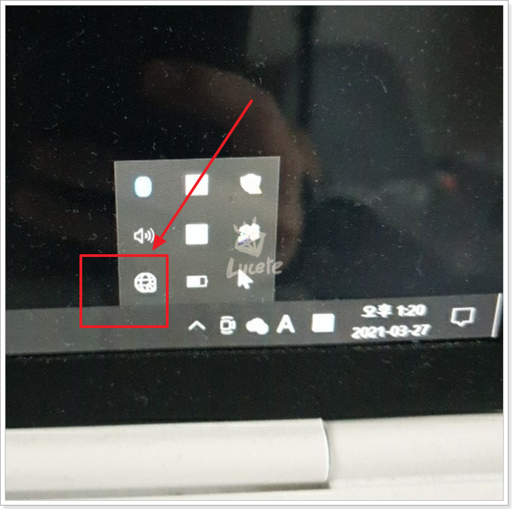 컴퓨터가 다시 시작합니다. (5~10분정도 걸립니다) 컴퓨터가 다시 시작하게 되면 우측 하단의 상태표시 줄에 지구모양의 인터넷 와이파이연결을 선택해 줍니다.